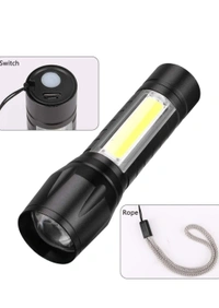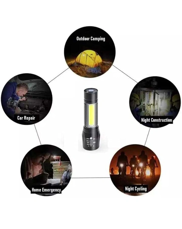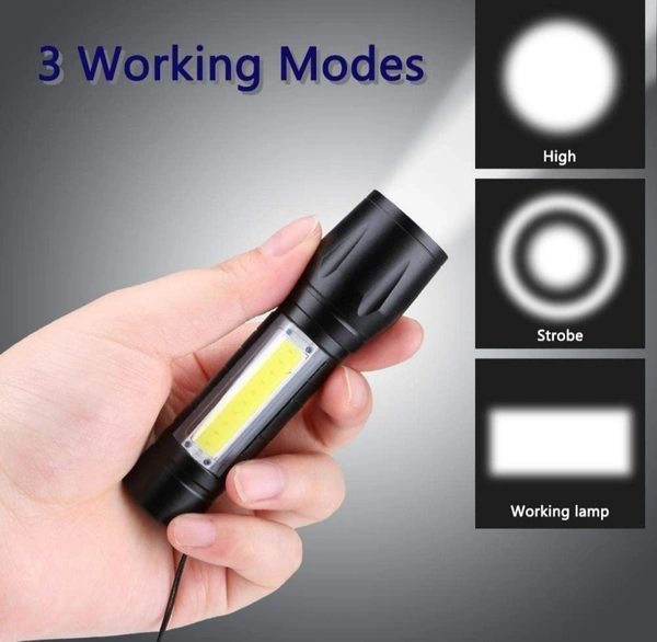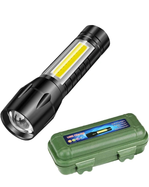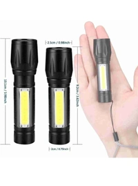 MEMOXY flashlight adds a COB sidelight and the COB sidelights can be used as Camping Lantern and Reading light or Desk Lamp. The C2F flashlight has a built-in 2000 mAh rechargeable battery that supports a 5V USB port for charging to a flashlight. You can charge the flashlight anywhere. 3 Modes Pen Clip Light Flashlight with Hanging Rope Here is an efficient tactical torch that is made from high-quality aluminium alloy. It is easy to carry, waterproof and slip resistant. This pocket-sized torch is lightweight, portable and powerful. This is integrated with 3 distinct lighting modes, XPE strong light, XPE flash light, and strong COB light. The torch is apt for camping, hiking, emergencies, exploration, fishing and domestic use. Features: Silicon Power Button Anti-Slip design Zoomable lighting Built In 18650 Rechargeable batteries COB LED light 6000K colour temperature Pocket-sized This LED Torch light, is small compact and powerful. You may use this portable torch light for camping, hiking or even domestic use. Smart Design This highly handy torch light works well as a spotlight and signalling light. This is a torch that meets a wide range of needs Rugged and Durable This torch is constructed using excellent quality alloy, which is extremely durable. It is tough, water resistant and rechargeable Rechargeable The torch comes with a rechargeable battery to make it more convenient to use. One and a half hours is required to fully charge for 5 hours of burn time Adjustable Focus The torch's focus and brightness may be adjusted to suit your needs. This torch is integrated with high-beam for 300 meters and side light for 30 meters