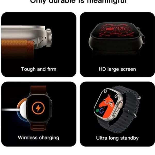 1.9 HD display Heart rate measurement Sleep detection Sport mode Bluetooth call The most rugged and capable Watch ever, designed for exploration, adventure and endurance. The watch strap use durable and soft silicone, prevents skin from irritation; flexible, lightweight and very comfortable to wear. Sweat & water resistant. An essential and versatile tool that fits on your wrist, Watch Ultra packs incredible capability into a surprisingly small space. Screen: 2.05 Inch TFT LCD screen Bluetooth version: Bluetooth 5.2 Compatilbe: IOS 10.0 or above/ Android 5.0 or higher. Liquid Silicone Strap 260MM*20MM*2.5MM ..